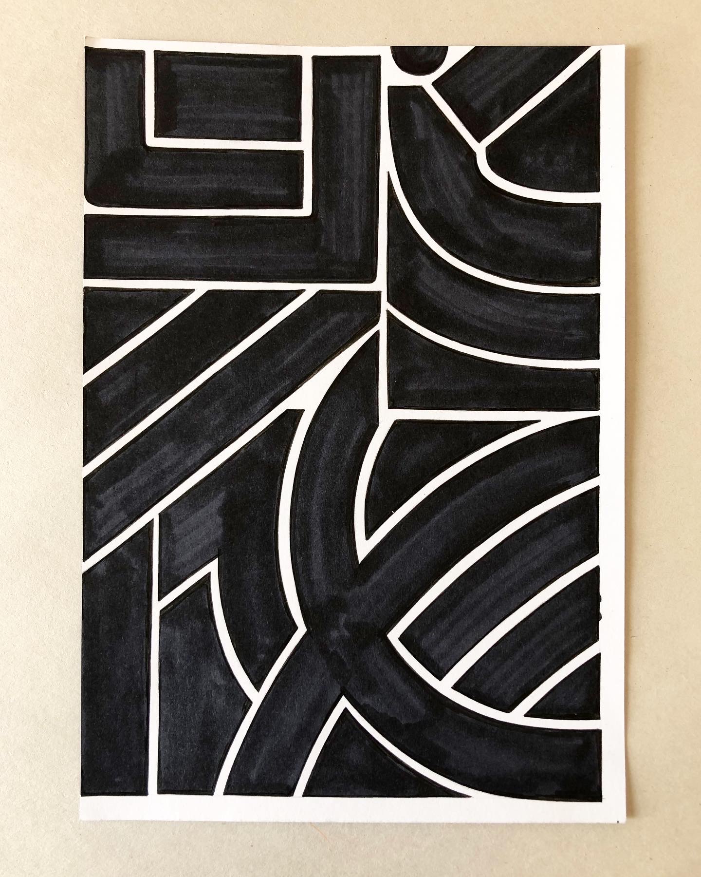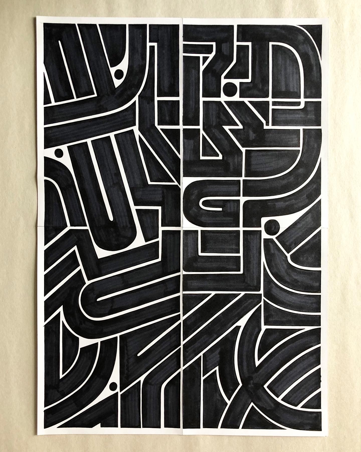 Drawing. Exploration of abstracted forms from digitized Hebrew alphabet.
